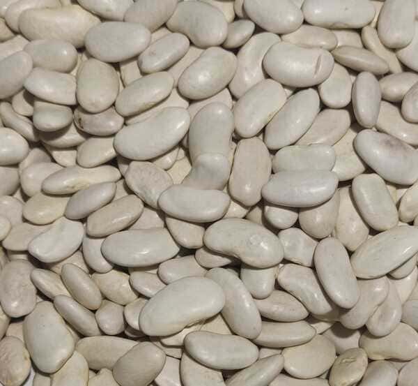Alubia blanca alargada, ligeramente aplastada. Destacan por su tamaño grande y su textura suave.