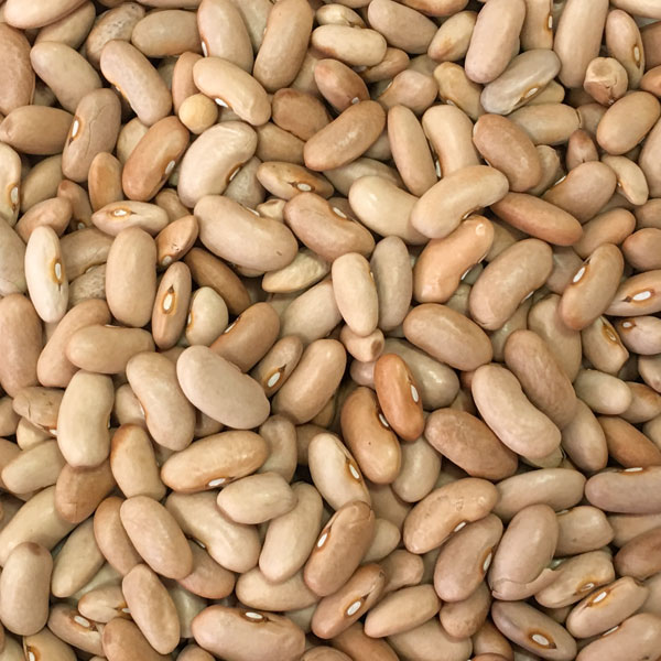 Alubia alargada color canela, ligeramente arriñonada, de tamaño medio.